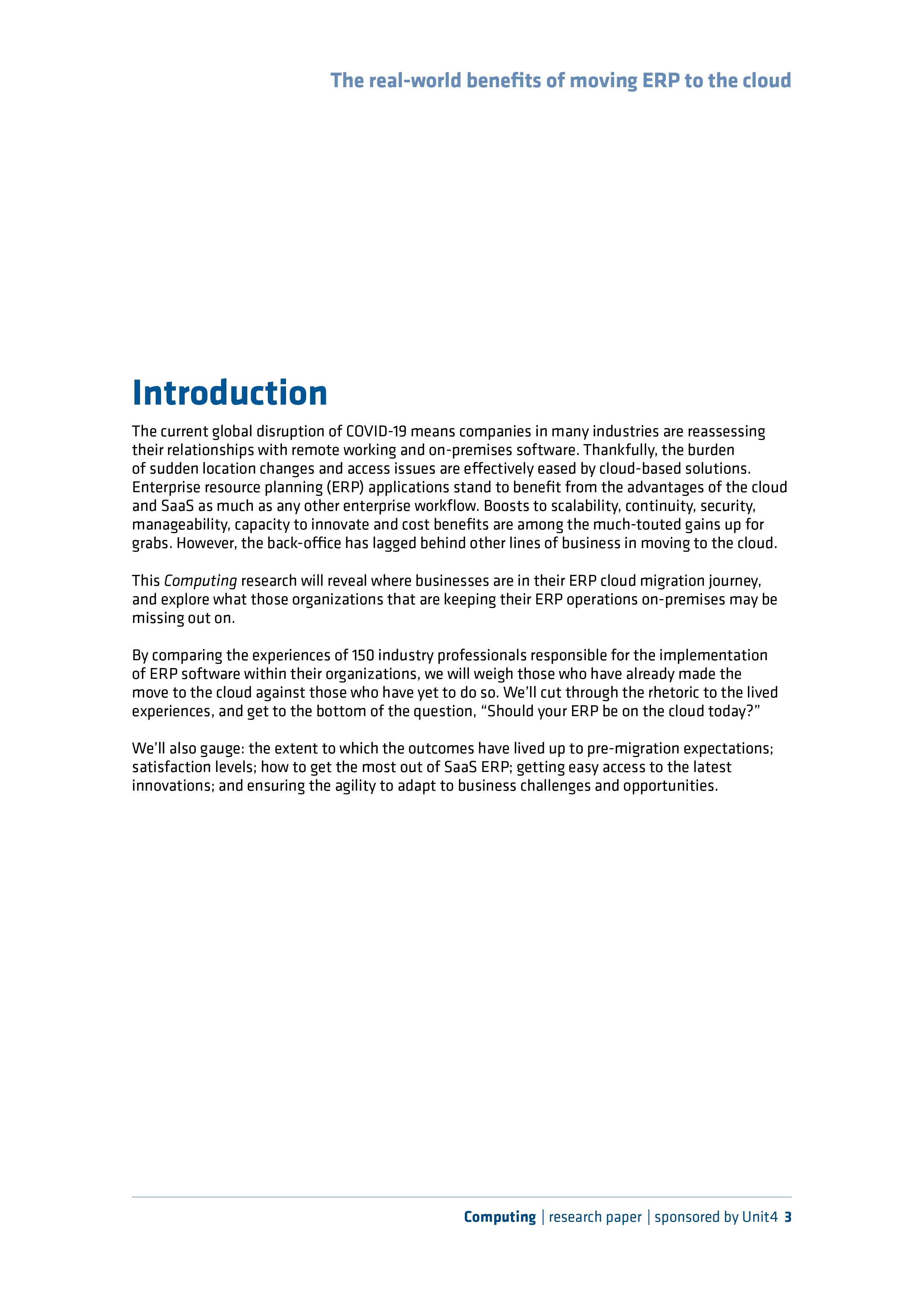 The current global disruption of COVID-19 means companies in many industries are reassessing their relationships with remote working and on-premises software. Thankfully, the burden of sudden location changes and access issues are effectively eased by cloud-based solutions. Enterprise resource planning (ERP) applications stand to benefit from the advantages of the cloud and SaaS as much as any other enterprise workflow. Boosts to scalability, continuity, security, manageability, capacity to innovate and cost benefits are among the much-touted gains up for grabs. However, the back-office has lagged behind other lines of business in moving to the cloud.